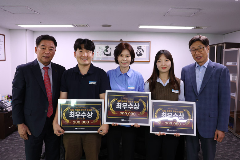 | ▲성남도시개발공사 이희석 사장(왼쪽)이 SDC-AI 청렴 콘텐츠 공모전 수상자들과 기념촬영을 하고 있다.(사진=성남도시개발공사) |
