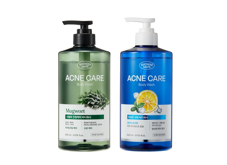 샤워메이트 아크네 케어 바디워시는 피부 고민에 따라 선택해 사용할 수 있도록 △여드름성 피부를 위해 진정 효과를 더한 ‘사철쑥 아크네 케어 바디워시’ △피부 열감으로 예민해진 피부에 시원함을 더해주는 ‘프로즌 아크네 케어 바디워시’ 등 총 2종으로 구성됐다.