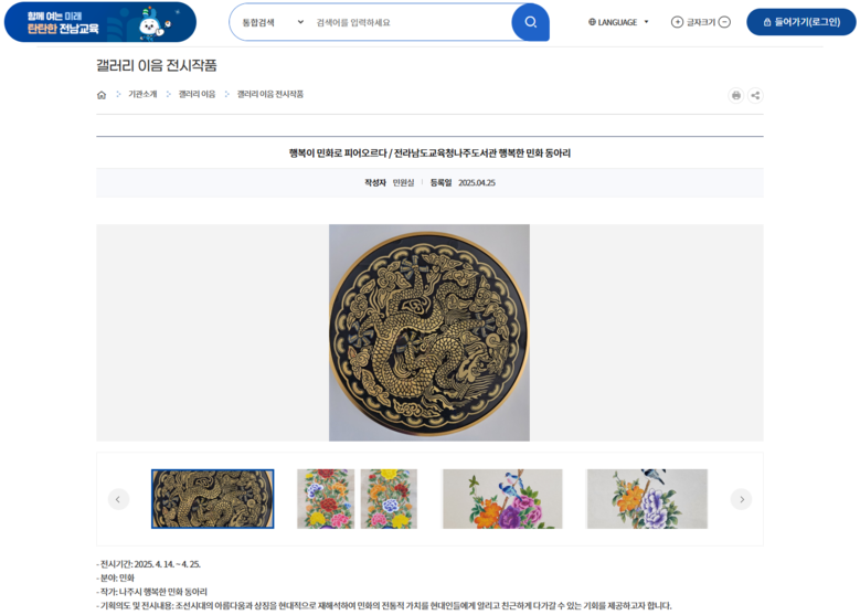 | ▲ 전라남도교육청 누리집 ‘갤러리 이음’ 메뉴 사진 |