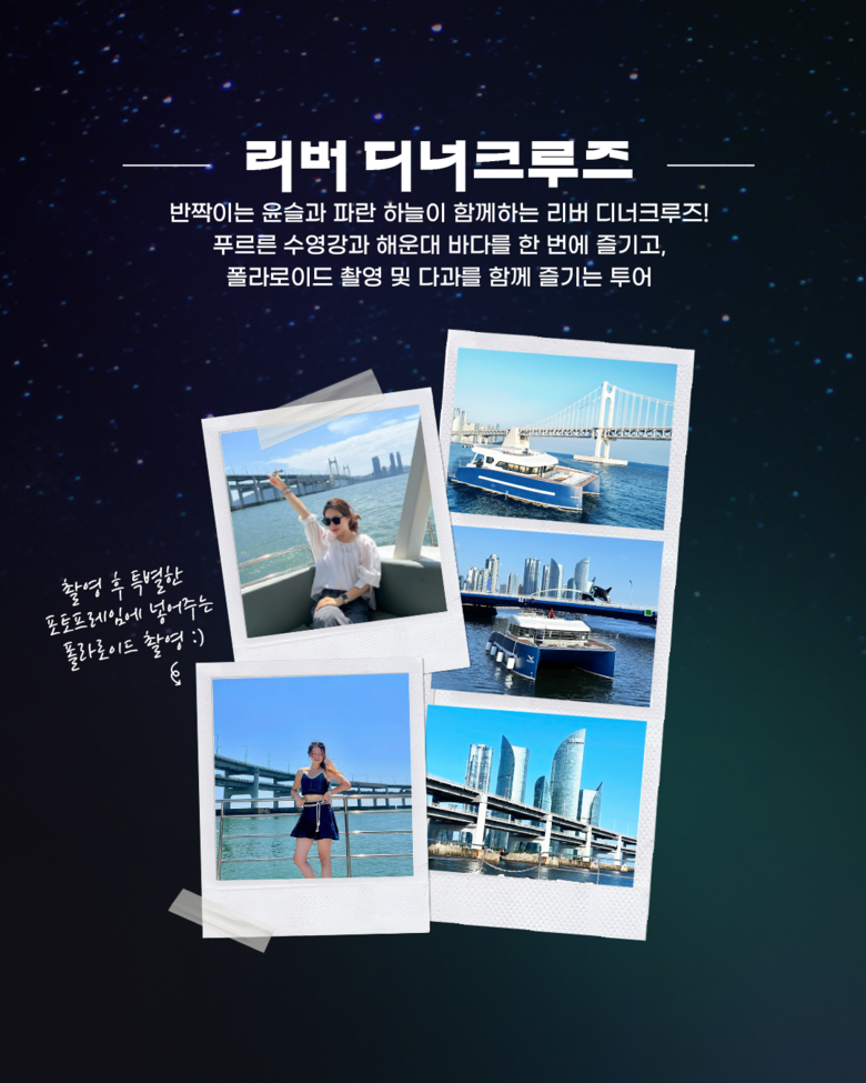 ◈ 자세한 내용과 예약 방법 등은 시 야간관광 전용 채널(@starry_night_busan.kr)을 통해 확인할 수 있 [부산 세계타임즈=이용우 기자] 부산시(시장 박형준)는 오늘(9일)부터 12월까지 매주 금·토·일, 수영강 일대에서 올해 '별바다부산 리버 디너 크루즈'를 정기 운항한다고 밝혔다.