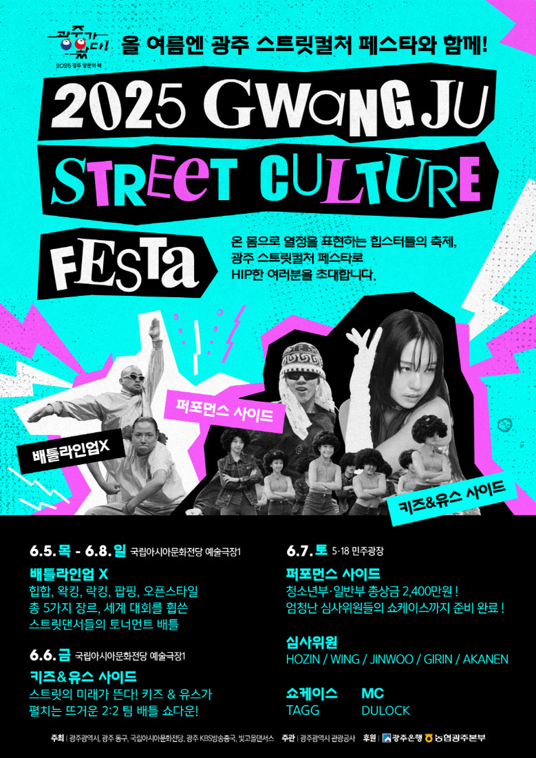 이승규 신활력추진본부장은 “광주 스트릿컬처 페스타는 시민과 관광객이 함께 어우러지는 여름 대표축제”라며 “젊은 세대의 감성과 열정이 광주 도심을 물들이고, 지역경제에 새로운 활력을 불어넣을 것으로 기대한다”고 말했다.