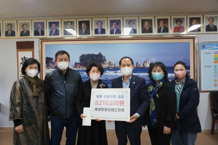 [동해시=세계타임즈 김민석 기자] 14일 재경중랑 강원도민회에서 동해시의회를 방문해 산불 피해 극복을 위해 사용해 달라며 321만원의 성금을 기탁하였다.
