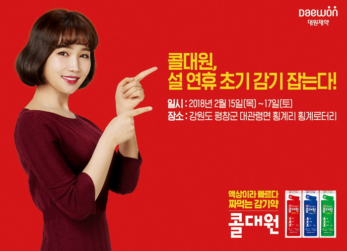 대원제약 헬스케어사업부 관계자는 “설 연휴 기간 동안 추운 날씨에도 불구하고 평창을 방문하는 소비자들에게 콜대원이 조금이나마 즐거움을 드리고자 이번 이벤트를 기획하게 되었다”며 “최근 계속되는 한파로 감기환자가 급증하고 있는 가운데 효과 빠른 짜먹는 감기약 콜대원으로 초기에 감기를 잡으시고 건강한 겨울 나시기를 바란다”고 말했다.