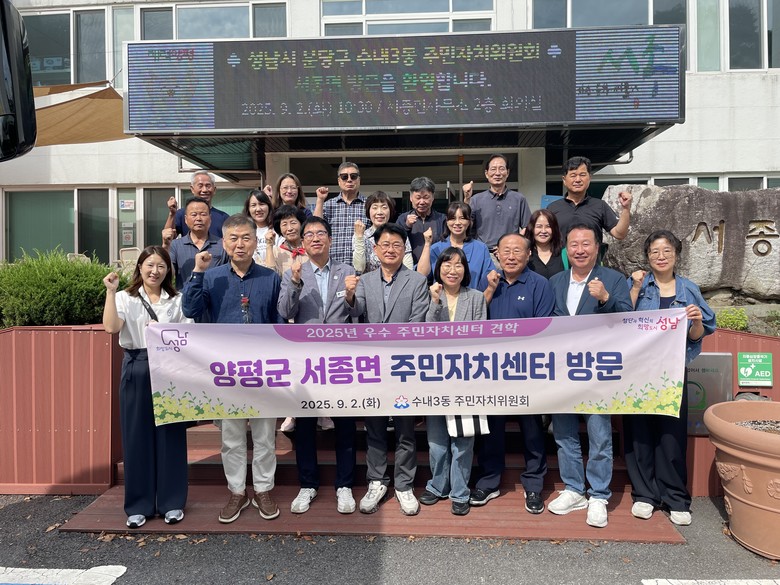 서종면 주민자치센터는 △39개의 다양한 강좌 운영 △주민 참여형 문화·복지 프로그램 활성화 △주민자치위원회의 적극적인 참여와 지원 등으로 높은 평가를 받고 있는 우수 사례지이다. 수내3동 위원들은 서종면의 운영 노하우와 주민 주도형 프로그램을 직접 체험하며 향후 자치활동에 접목할 수 있는 방안을 모색했다.