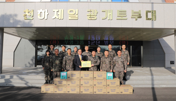 황대일 1군단장은 “국토방위에 힘쓰는 장병들을 위해 매년 명절 때마다 찾아준 부영그룹 이중근 회장님 이하 직원 분들께 감사드린다”며 “우리 군은 완벽한 국토방위 임무 완수를 위해 헌신전력 하겠다”고 말했다.