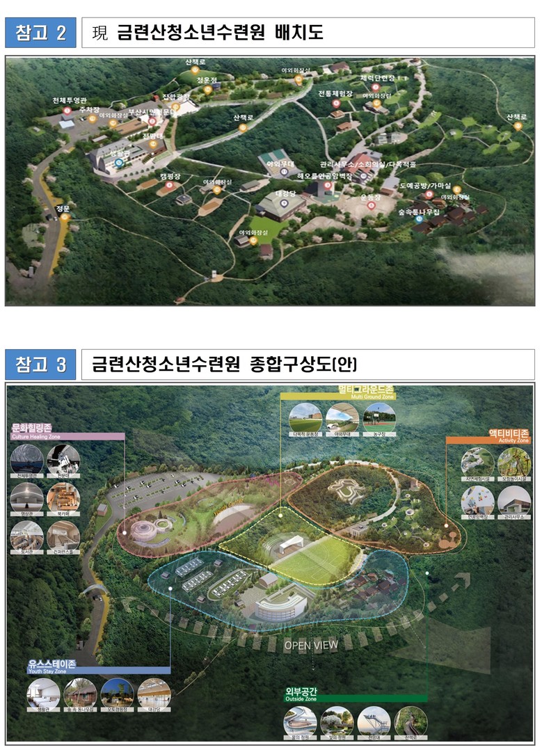 이번 용역은 건축물 및 시설의 노후화로 인해 이용 환경이 점차 열악해지고 있는 금련산청소년수련원을 안전하고 쾌적한 청소년 활동 공간으로 탈바꿈하기 위한 종합적 개발계획을 마련하는 데 중점을 둔다.