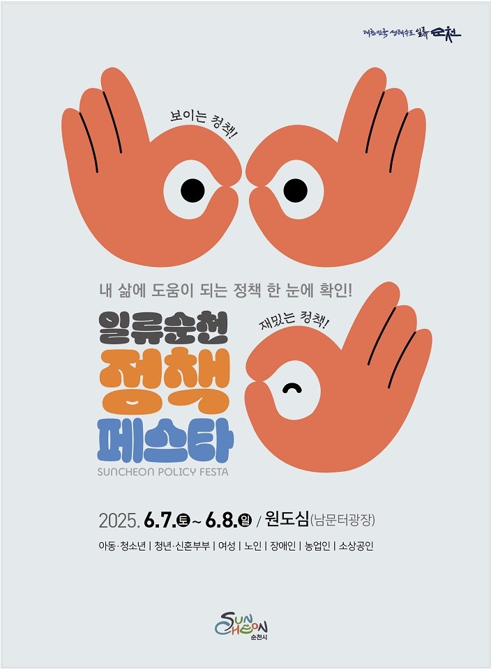 정책페스타는 같은 기간 열리는 원도심 콘텐츠 축제 ‘원츠 순천’과 도심 해방로드 ‘주말의 광장’과 연계해 원도심 전역을 하나의 축제 공간으로 조성하고, 활력을 더할 예정이다.
