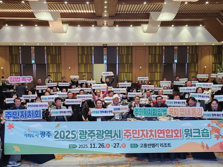 광주광역시(시장 강기정)는 26~27일 이틀간 고흥 일원에서 96개 동 주민자치회 회장과 위원, 시‧구 담당자 등 100여 명이 참석한 가운데 ‘2025 주민자치연합회 워크숍’을 개최했다.