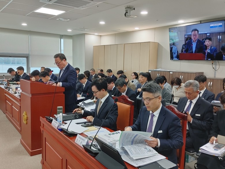 | ▲경기신보 시석중 이사장 '2025 경제노동위원회 행정사무감사' 업무보고 발표 모습. |