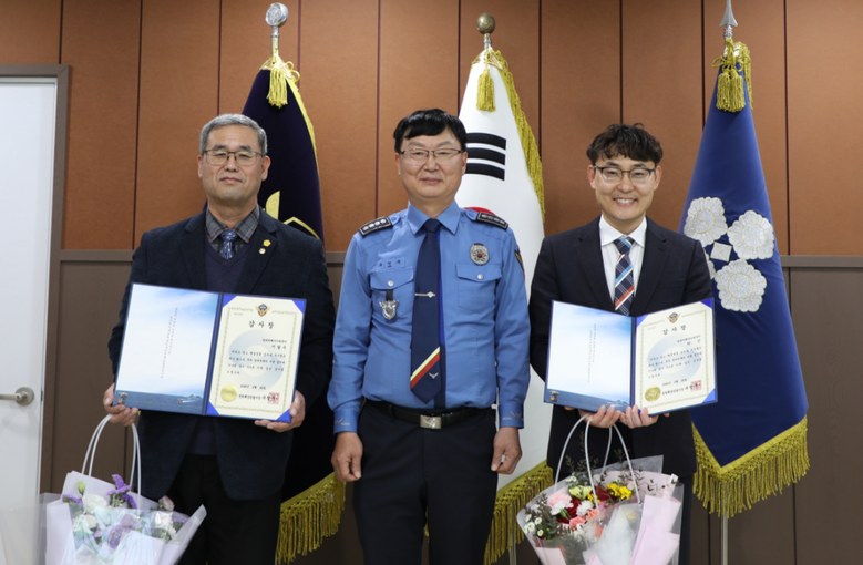 이날 수여식은 창원해양경찰서에서 진행됐으며, 수사과장 주관 아래 범죄피 해자지원센터 법률지원분과 지달수 위원과 의료지원분과 박 민 위원이 그간의 공로를 인정받아 창원해양경찰서장 감사장을 수상했다.