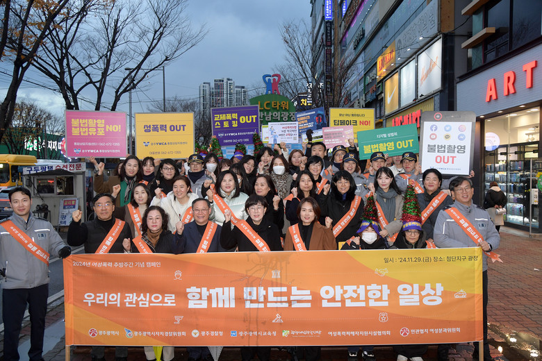 [광주 세계타임즈=손권일 기자] 광주광역시(시장 강기정)는 ‘2024년 여성폭력 추방주간(11월25일~12월1일)’을 맞아 29일 첨단지구 LC타워 만남의 광장에서 ‘우리의 관심으로 함께 만드는 안전한 일상’을 주제로 유관기관 합동캠페인을 실시했다.