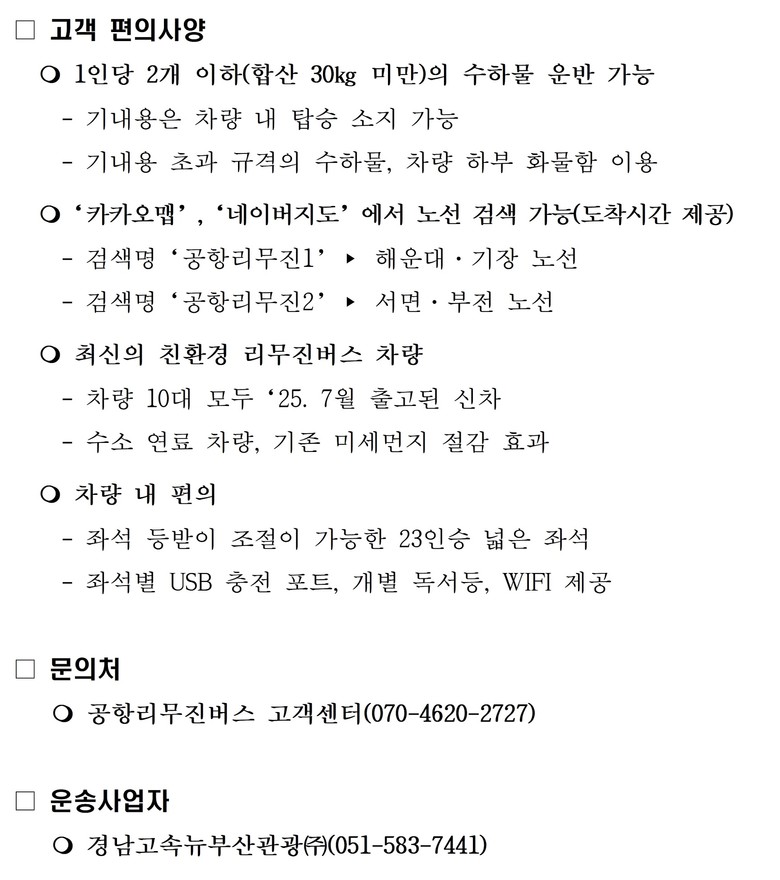 이어, “공항리무진버스는 공항 도착 이후 걷는 수고를 최소화하고 주차 걱정까지 없어 김해공항을 이용하는 시민과 관광객들에게 가장 합리적인 대중교통 수단”이라고 덧붙였다.