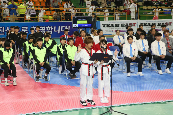 [동해시=세계타임즈 김민석 기자] 동해시 도내 초·중·고 학생들이 모여 태권도 실력을 겨루는 ‘제10회 동해무릉기 강원학생 태권도 대회’가 20일, 21일 양일간 웰빙레포츠타운 내 동해체육관에서 개최되었다.