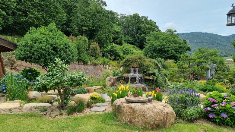 한울정원, 바위정원, 바람의 정원, 수국동백정원, 장미정원 등 5개 주제 정원의 배치가 돋보인다. 시그니처 정원인 ‘한울정원’은 ‘바른 우리의 터전’이라는 의미다. 낮은 언덕과 연못, 굽이굽이 펼쳐진 산책로, 사계절 내내 산 위에서 시원한 물줄기 떨어지는 폭포가 있다.