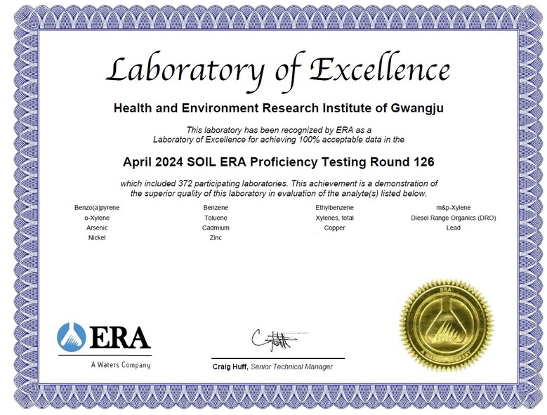 광주보건환경연구원은 지난 2015년부터 해마다 이 평가에 참여, 9년 연속 ‘최우수 분석기관’ 인증을 획득했다. 이는 광주보건환경연구원의 분석 능력이 국제 기준에 부합하며, 신뢰성 있는 분석 결과를 지속적으로 제공하고 있음을 보여주는 성과이다.