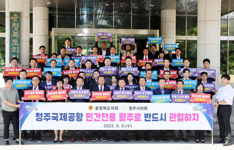 | ▲ 청주국제공항민간전용활주로보장없는전투기추가배치반대성명서발표_의회현관 |