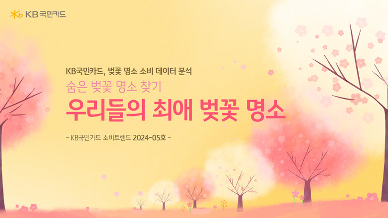 KB국민카드 데이터사업그룹 관계자는 “본격적인 벚꽃 시즌에 앞서 23년 데이터를 활용하여 사람들이 즐겨 찾는 벚꽃 명소를 분석해 보았다.”며 “올해에도 봄의 정취를 만끽할 수 있는 다양한 벚꽃 명소에서 소중한 분들과 좋은 추억을 쌓으시길 바란다.”고 말했다.