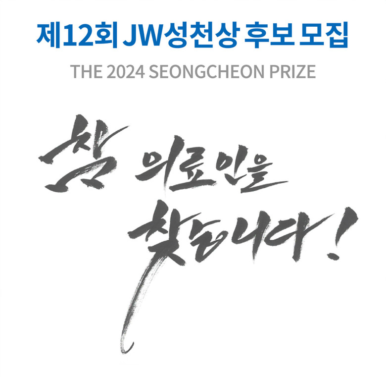 이번 JW성천상 수상자 공모는 오는 3월 8일까지 진행되며 재단 홈페이지에서 후보자 추천서를 내려받아 업적 내용 등을 작성해 이메일 또는 우편으로 접수하면 된다.