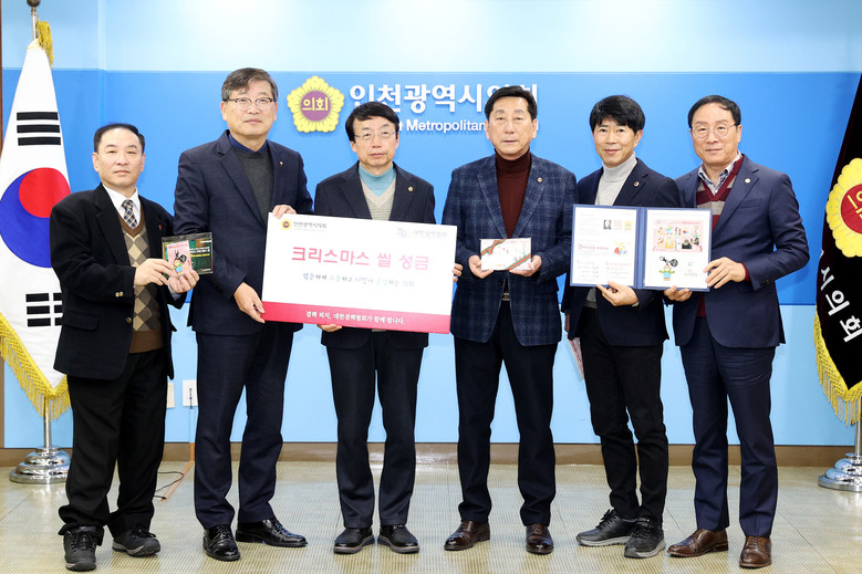 인천시의회는 4일 의회 의장접견실에서 허식 의장을 비롯해 이봉락 제1부의장, 박종혁 제2부의장, 한민수 의회운영위원장, 대한결핵협회 인천지부 관계자 등이 참석한 가운데 크리스마스 씰 성금 100만 원을 대한결핵협회 인천시지부(지부장 우윤식)에 전달했다.