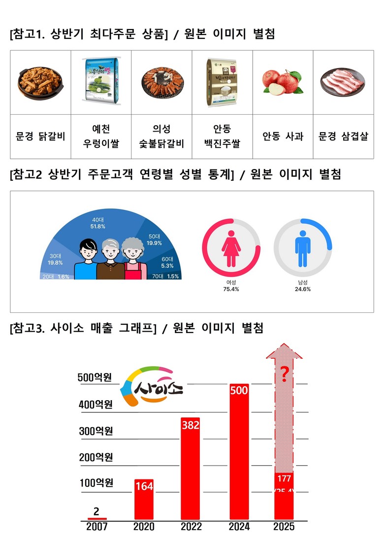 김주령 경상북도 농축산유통국장은 “사이소 소비성향 분석 결과는 사이소가 합리적인 소비자로부터 가장 신뢰받는 쇼핑몰임을 반증하고 있다”며 “앞으로도 사이소를 믿을 수 있는 우리 농특산물을 합리적인 가격으로 만나는 직거래의 공간으로 만들어 가겠다”고 전했다.