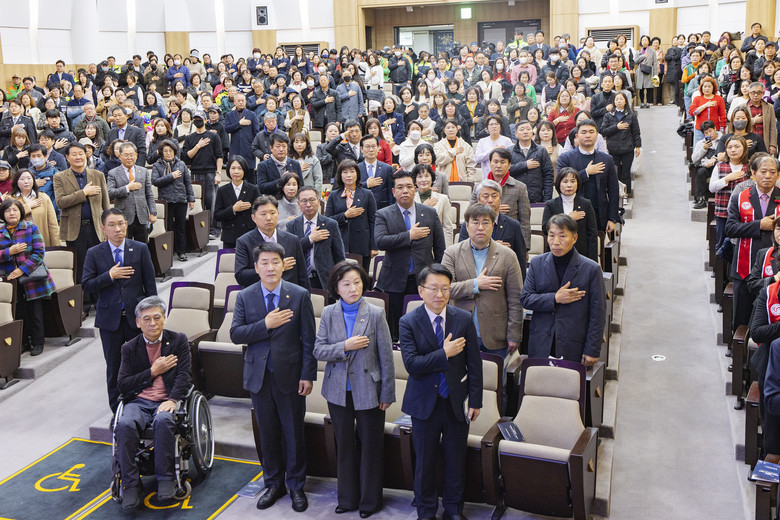 이날 기념식에는 배정수 의장을 비롯해 정흥범 부의장, 장철규 기획행정위원장, 이계철 도시건설위원장, 김경희·명미정·배현경·송선영·유재호·위영란·이용운·이해남·전성균·조오순·최은희 의원이 참석했고 자원봉사자 등 약 500명이 함께했다.