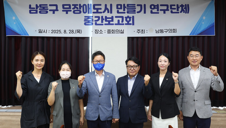 [남동구 세계타임즈=심하린 기자] 남동구의회 의원연구단체 「남동구 무장애도시 만들기 연구회」가 지난 28일 남동구의회 중회의실에서 ‘남동구 무장애도시 설계 방안 연구’ 중간보고회를 개최했다.