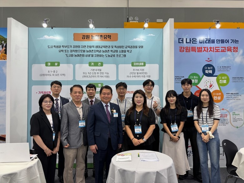신경호 교육감은 “이번 에이팜쇼 참가를 통해 강원 농어촌유학이 도시 학부모들에게 더욱 널리 알려지는 계기가 되기를 바란다”며, “자연 속에서 아이들이 행복하게 성장하는 강원 농어촌유학의 가치를 알리고, 더 많은 아이들이 참여할 수 있도록 노력하겠다”고 밝혔다.