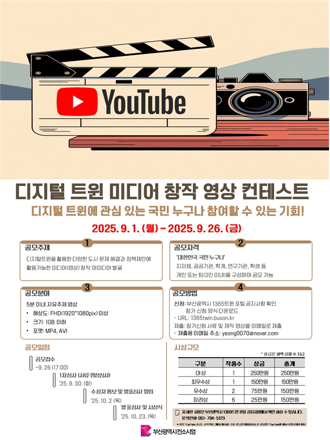 한편, 시는 대시민 플랫폼 활성화를 위해 오는 9월 26일까지 '디지털 트윈 미디어 창작 영상 콘테스트' 공모전을 진행한다. 우수 활용 사례로 선정된 창작 영상물은 부산의 가상 모형(디지털 트윈)을 홍보하는 데 적극 활용될 예정이다.