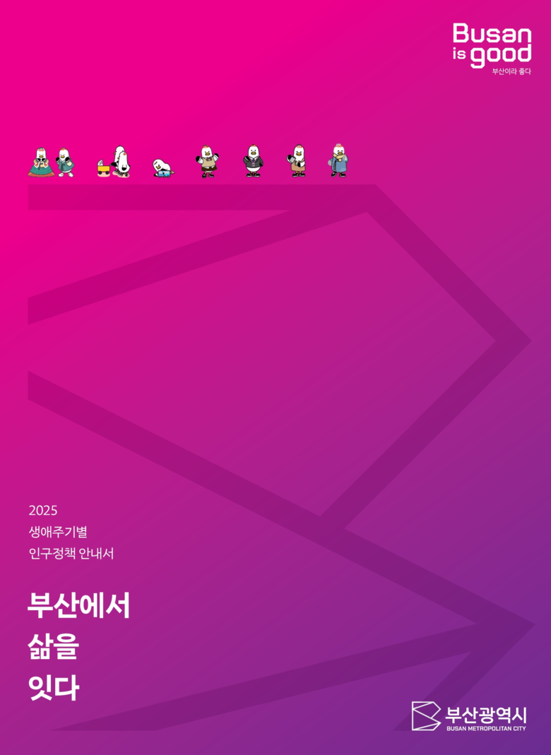 ◈ 구·군, 유관기관, 지역대학 등에 배포해 대시민 홍보 강화 [세계타임즈=부산 이용우 기자] 부산시(시장 박형준)는 결혼·임신 출산에서부터 노년에 이르기까지 시민의 전 생애주기별 인구정책을 한눈에 담은 「2025 생애주기별 인구정책 안내서: 부산에서 삶을 잇다」를 발간했다고 밝혔다.