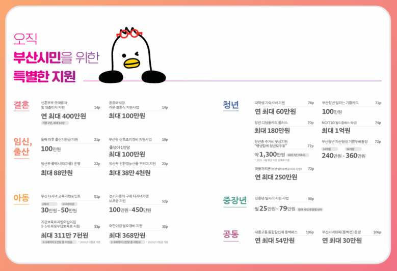 ◈ 특히, '부산시와 함께하는 2025 인생 로드맵' 페이지를 통해 생애주기의 흐름에 따라 지원받을 수 있는 인구정책을 쉽게 파악할 수 있도록 구성
