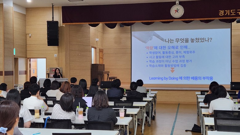 연수에서는 교육과정-수업-평가 일체화를 기반으로 한 수업 설계 방안과 함께, 깊이 있는 수업 실천 사례를 중심으로 교수·학습 전략이 소개되었다. 특히 수석교사와 함께 깊이 있는 수업의 의미와 원리를 탐색하고, 학습자 중심 수업 구현을 위한 실천적 접근이 이루어져 교사들의 큰 호응을 얻었다.