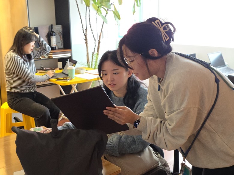| ▲ 청년 나다움디자인 스튜디오 과정에 참여한 청년들이 포트폴리오 사진찍기 체험을 하고 있다 |