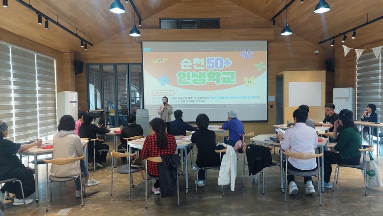 | ▲ 순천50+인생학교 참여자들이 교육에 참여하고 있다 |