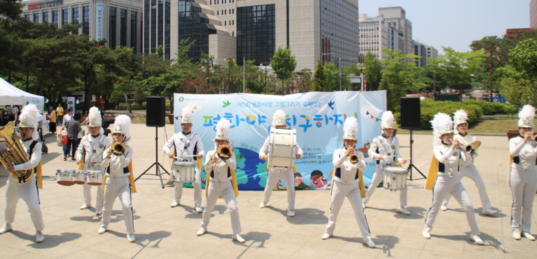 오늘 행사에는 제4회 수상작 전시, 마칭밴드 공연, 마술쇼, 한글만다라, 페이스페인팅, 캐리커쳐, 숲밧줄놀이, 평화손도장 찍기 등 각종 체험활동이 다양하게 마련되어 참가자들의 재미를 더했다.