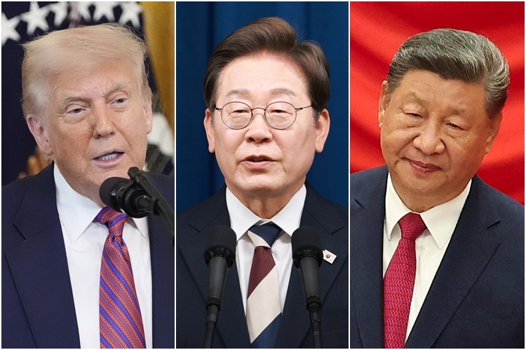 왼쪽부터 트럼프 미국 대통령·이재명 대통령·시진핑 중국 국가주석
