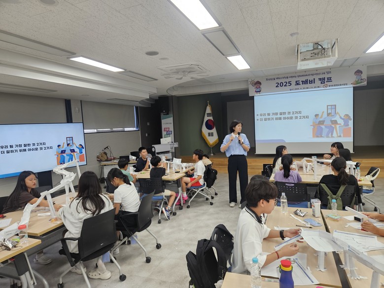 [광명시 세계타임즈=송민수 기자] 광명교육지원청(교육장 이용현)은 미래 인재들에게 도전정신과 창의적 문제해결력을 심어주기 위해 8월 30일‘도깨비 캠프’를 초등학교 5‧6학년 학생들을 대상으로 운영하였다. 도깨비 캠프란‘도전정신을 깨우고 비상을 지원하는 앙트레프레너십(기업가정신)교육 캠프’의 줄임말이다.