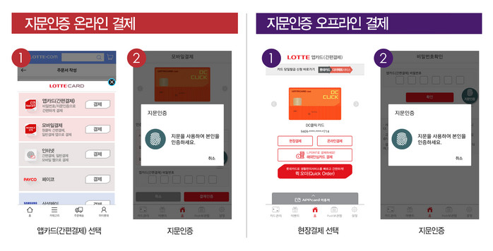 롯데카드는 ‘롯데앱카드’와 모바일 고객센터 ‘스마트롯데’ 앱에 블록체인 기반의 지문인증 기술을 적용한다. 현재는 사용자가 롯데앱카드로 온/오프라인 결제할 때 6자리 결제비밀번호 입력을 통해 결제하거나 스마트롯데 앱 로그인 시 아이디나 패스워드 또는 공인인증서 비밀번호 입력 절차가 필요했다.