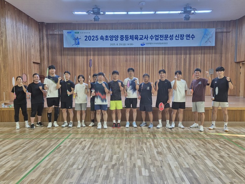 [강원도 세계타임즈=송민수 기자] 속초양양교육지원청(교육장 한명진)은 8월 29일(금) 속초중학교 체육관에서 ‘중등 체육 교사 수업 전문성 신장 연수’를 운영하였다.