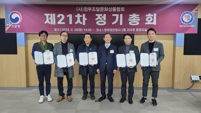 [세계타임즈]최성룡기자 =정부조달문화상품협회(회장 고성배)는 2월 28(수) 14시, 정부대전청사에서 ‘2024년 정부조달업체지정서’ 수여식과 함께 ‘제21차 정기총회’를 개최했다.