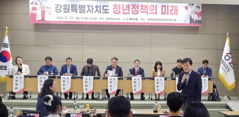 이어진 토론에서는 이승구 강원대학교 관광경영학과 교수가 좌장을 맡아 ▲박찬흥 강원도의회 경제산업위원장 ▲박주희 중앙청년재단 사무총장 ▲임재영 상지대학교 총학생회장 ▲안태환 강원 청년정책조정위원회 위원 ▲최진영 강원특별자치도 청년특별보좌관 ▲오석기 강원일보 편집담당 부국장 ▲임현식 강원특별자치도 일자리청년과장이 참여했다. 토론자들은 일자리, 교육, 주거, 문화, 복지, 참여 등 다양한 분야에서 실질적인 실행 과제를 논의했다.