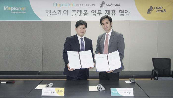 [세계타임즈 이영진 기자] 인터넷생명보험사 교보라이프플래닛생명보험(이하 ‘라이프플래닛’)은 국내 대표 리워드형 어플리케이션 개발업체 ‘캐시워크’와 지난 20일 ‘The 건강든든 캠페인’(이하 ‘캠페인’)을 런칭하고 ‘헬스케어 플랫폼’을 구축하는 내용의 업무협약(MOU)을 체결했다.