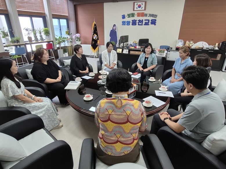 첫 일정으로 8월 29일(금) 10시, 홍천읍 지역의 중·고등학교(홍천중, 홍천여중, 동화중, 홍천고, 홍천여고, 홍천농업고)로 구성된 2권역 학부모회 회장단과 진행되었다. 이 자리에서 학부모회 활동을 공유하고 지역교육 현안에 대한 다양한 의견을 나눴다.
