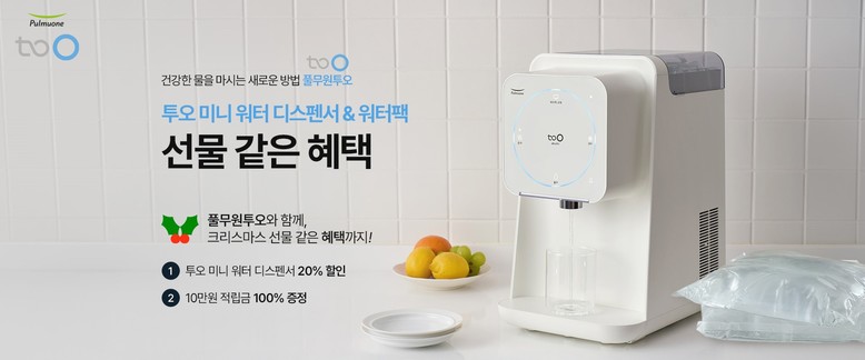 풀무원샘물 관계자는 “연말을 맞아 실용적이면서도 지속 가능성을 고려한 제품인 투오 미니 워터 디스펜서를 고객들이 합리적인 가격으로 경험해 볼 수 있도록 이번 프로모션을 기획하게 됐다”며 “새해에도 고객 중심의 가치를 바탕으로 만족도를 높인 제품을 선보이며, 소비자들의 건강한 수분 섭취와 라이프스타일을 도울 것”이라고 밝혔다.