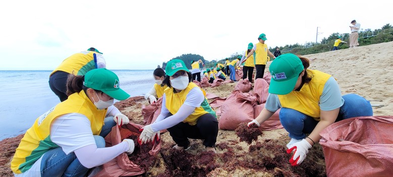 습한 날씨임에도 불구하고 동해지부는 해초를 포대에 담으면서 주변정리까지 말끔하게 청소했다.