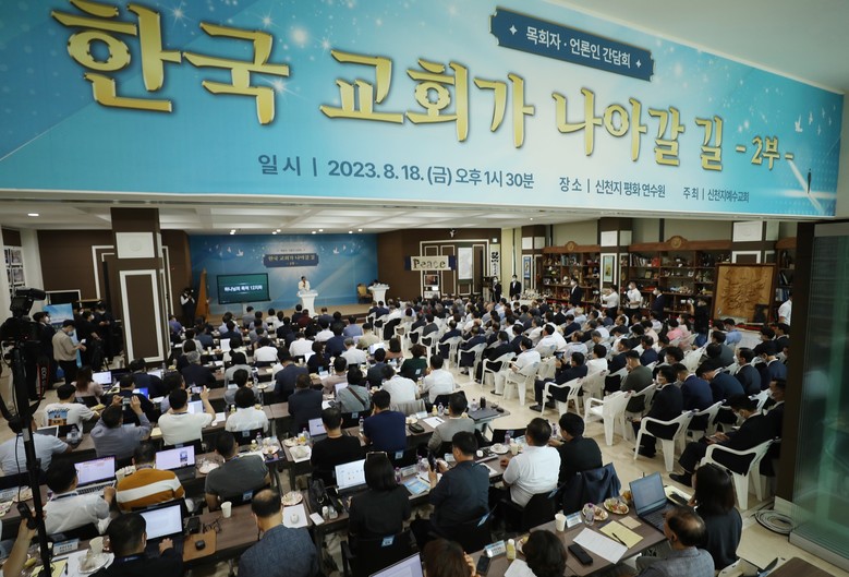 신천지예수교 증거장막성전(총회장 이만희, 이하 신천지예수교회)은 18일 청평 신천지 평화연수원에서 ‘한국교회가 나아갈 길 2부’ 간담회를 열고 목회자와 언론인을 초청했다. 지난 7월 19일 열린 1차 간담회에 이은 2차 간담회로, 언론인은 물론 목회자도 초청해 폭넓은 소통의 장을 마련했다.