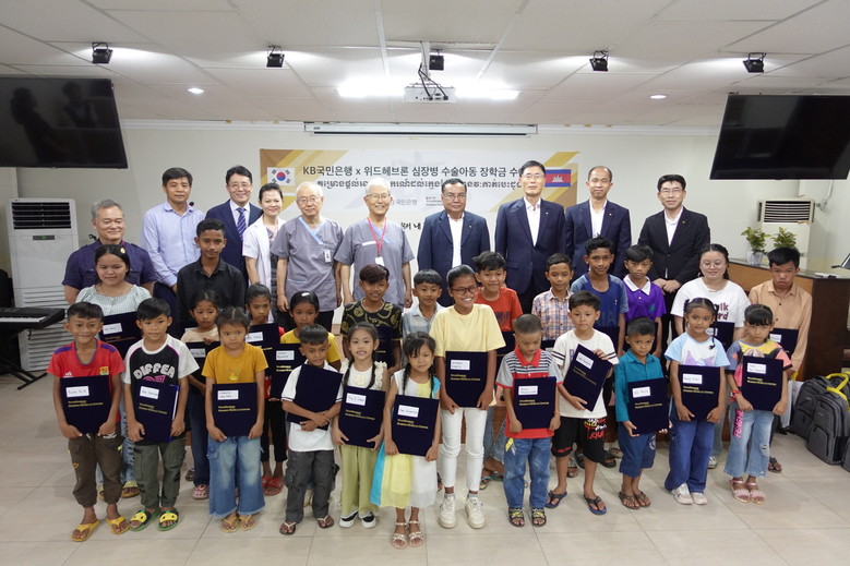 이 날 장학금 수여식에는 옴 쌈은 KB프라삭은행장, 김현종 KB프라삭은행 부행장, 위드헤브론의 김우정 헤브론의료원장, 배기안 헤브론병원장, 김용기 이사 등 관계자들이 참석해 심장병 환아들에게 장학금을 전달하고 미래의 인재로 성장할 수 있도록 응원했다.