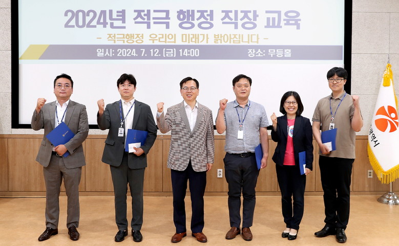 수여식에 이어 공무원과 공사·공단 직원 100여명을 대상으로 공직사회 적극행정 문화를 정착시키고 공직자의 창의성과 전문성 역량 강화를 위한 적극행정 직장교육을 실시했다. 인사혁신처 적극행정 강사단 소속 광주시 감사위원회 임대진 사무관이 ‘적극행정! 우리의 미래가 밝아집니다’를 주제로 적극행정 지원 제도·사례 등을 교육했다.
