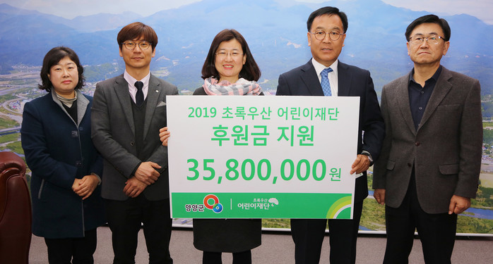 이번에 전달한 후원금은 관내 저소득층 가구 대상 정기결연후원금과 육상 등 인재아동 양성을 위한 장학금으로 어린이재단은 지난해에도 양양에 거주하는 아동 53명에게 약 7,500여만 원을 지원한 바 있다.