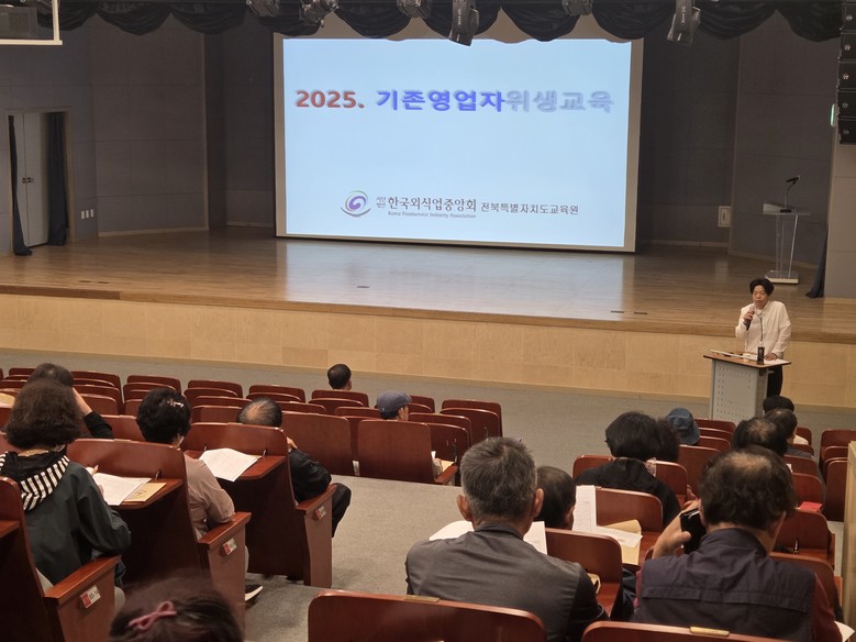 군은 지난 23일 (사)한국외식업중앙회가 주최한 ‘2025년 기존영업자 위생교육’ 현장을 찾아 관내 요식업소 운영자들을 대상으로 대회 일정과 협조 사항을 안내했다. 이날 교육에는 진안지역 음식업체 대표 100여 명이 참석했다.