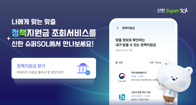 신한금융 관계자는 “이번 서비스를 통해 정책지원 혜택들에 대한 고객의 접근성과 편의성을 높였다”며, “‘신한 슈퍼SOL’은 앞으로도 다양한 협업을 통해 고객의 실생활에 도움이 되는 서비스를 제공하도록 노력하겠다”고 말했다.